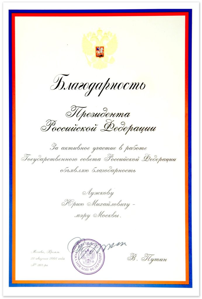 Благодарность Президента Российской Федерации