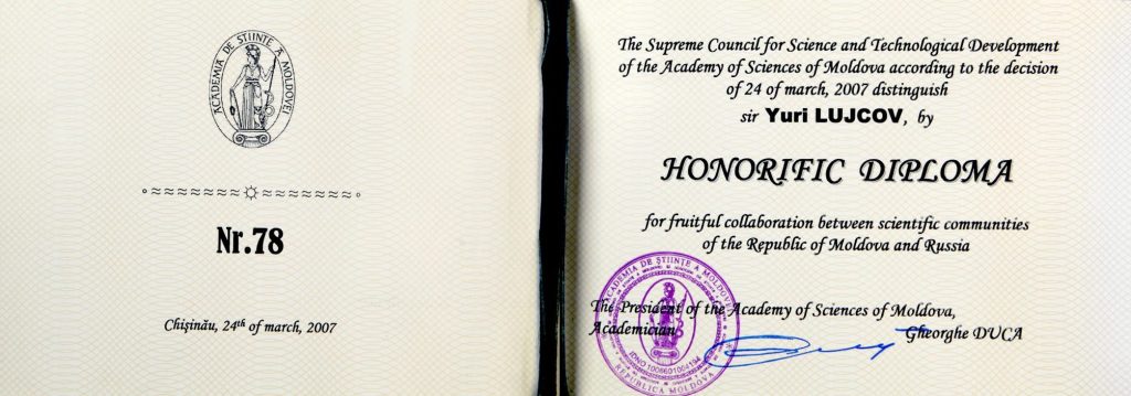 Почетный Диплом Академии наук Молдовы